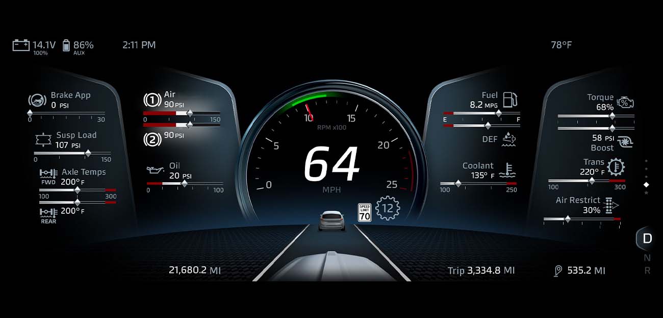 The new T880S Performance Hood brings the signature Kenworth look to your vocational job. From a larger cooling module for heavier hauls to your choice of chrome or black intake spears and mesh grille, the T880S Performance Hood delivers both function and style. Also available with the optional Kenworth DigitalVision mirror system for optimum job-site visibility.